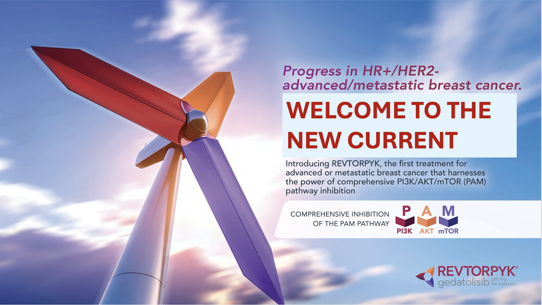 REVTORPYK is a big leap forward in the treatment of HR+/HER2- breast cancer, inhibiting all 3 components of a critical pathway. Unleashing the power of PAM pathway inhibition has demonstrated unprecedented mPFS results in a patient population that desperately needed it. Approval anticipated April 2026.
